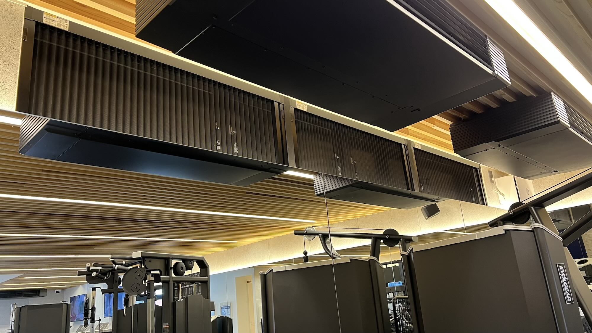 焼肉屋さんで使うような150mm径の強力換気扇を取り付けたので、以前に比べてジム内の空気が澄んでいるような気がします!