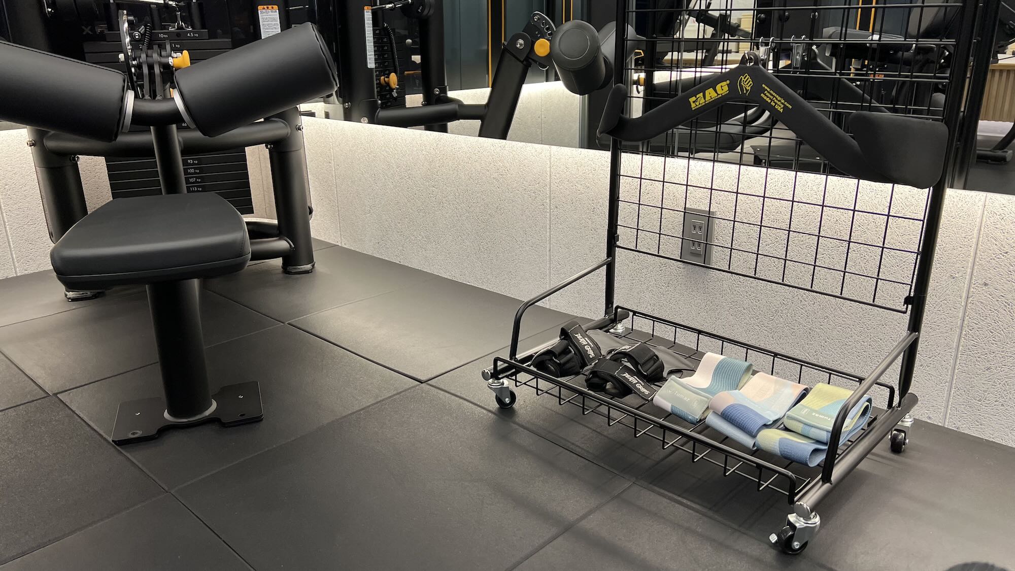 トレーニングバンドとパワーグリップの置き場所を変更しました。ラットプルダウンとヒップスラストマシンで使うことが多いと思うので、その近くへ。