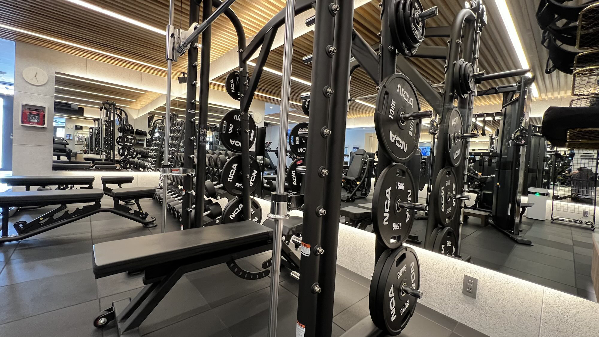 スミスマシンについていたバーベルプレートを「ROGUE FITNESS」から持ちやすい「ハンドル付きのウレタンプレート」に変更しました。ラバーゴムではないのでニオイも気になりません。総重量は147.5kgです。