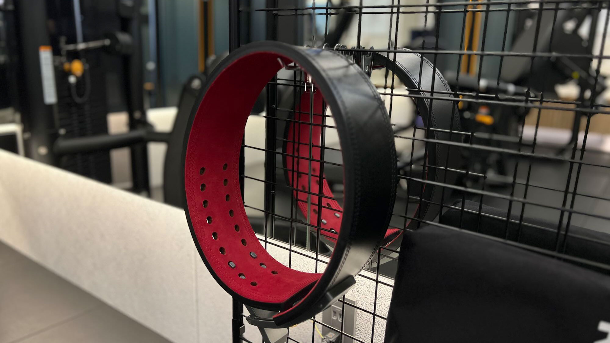 SBDのパワーリフティングベルトを置きました。腹圧を高めて腰を保護し怪我の予防につながります。レバーアクションなので着脱しやすく、赤の差し色がカッコイイです。