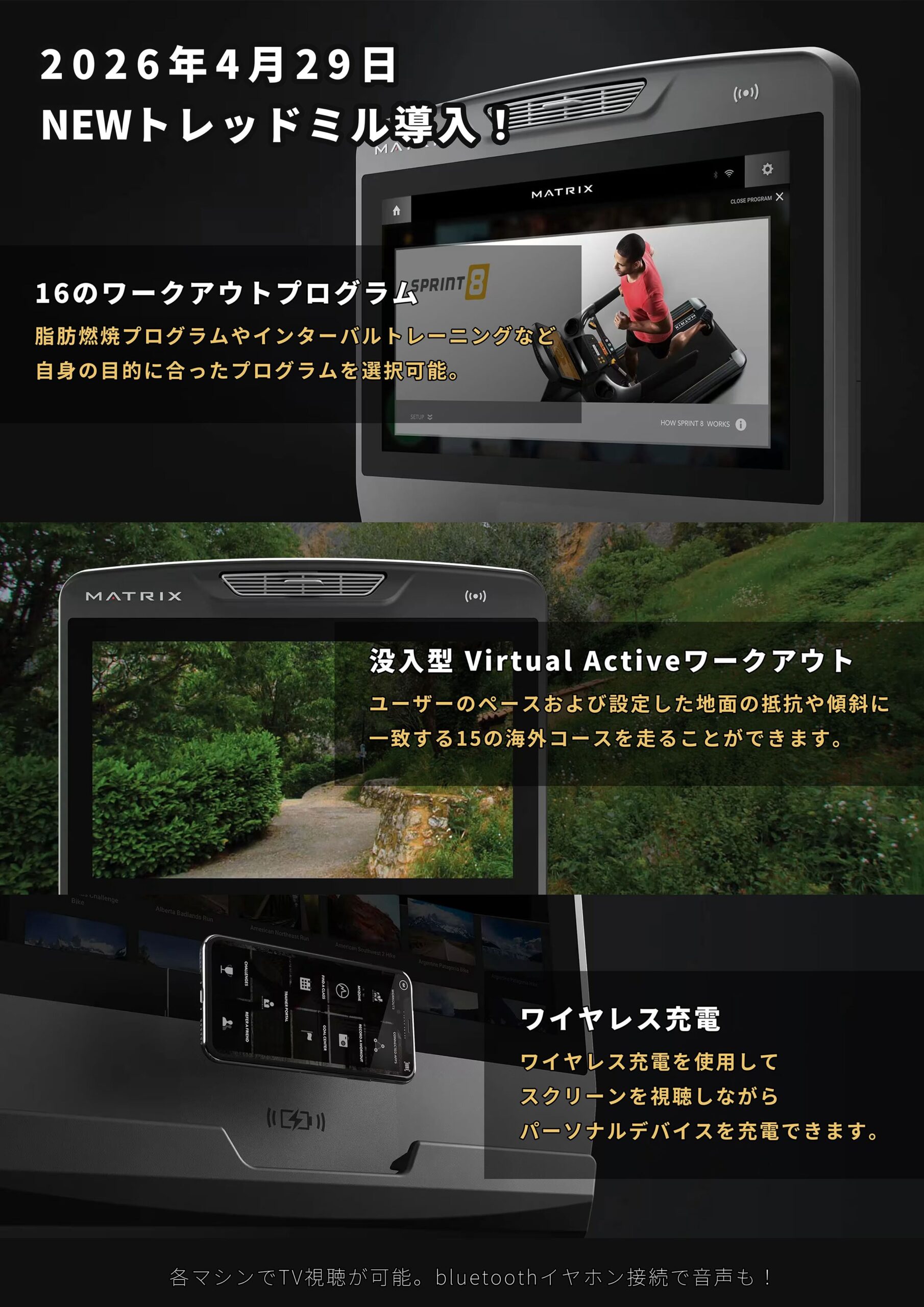 ジムに現在設置してあるEVOLGEAR社製のトレッドミル(ランニングマシン)4台をMATRIX社製の高性能トレッドミルに全台入れ替えます。